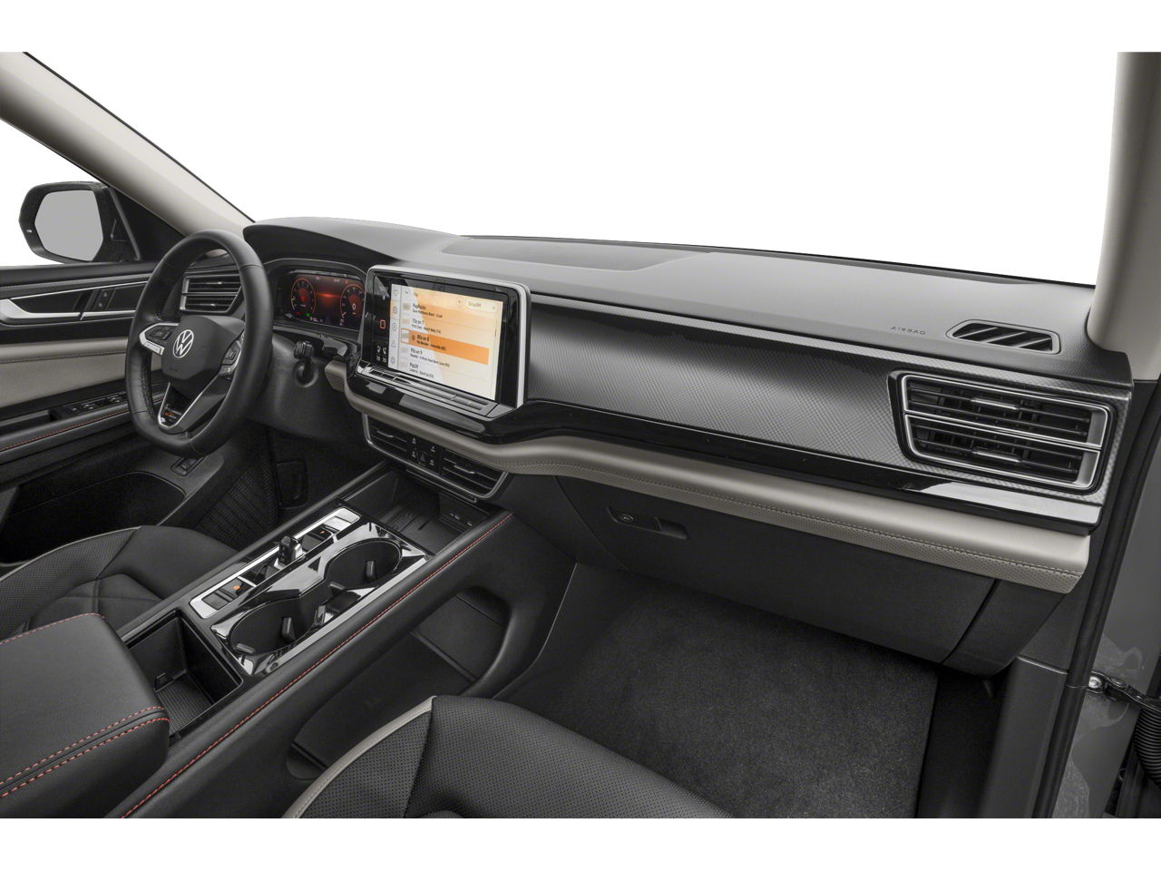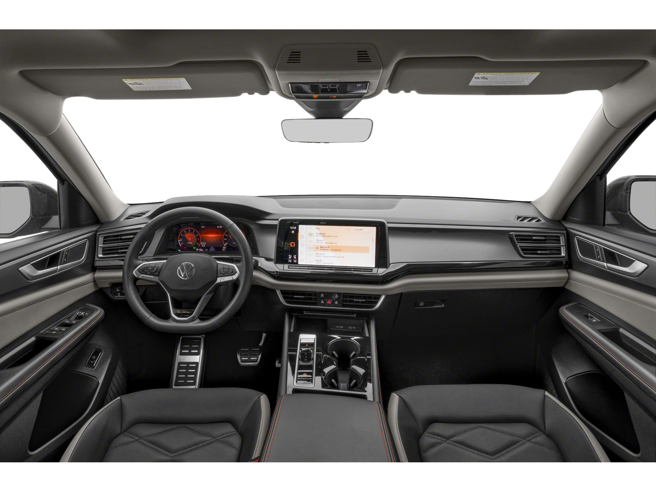 - MIB3 Composition Media -inc: 12" touchscreen multi-function center display, AM/FM/HD radio and WMA/MP3/FLAC player w/USB-C input, voice control, SiriusXM w/360L (w/3-month free trial subscription; 360L services require acceptance of SiriusXM terms), 6-speaker sound system, Bluetooth® connectivity (for compatible devices), capability for in-vehicle 4G LTE enabled Wi-Fi (cellular data plan required; includes limited trial), capability for connected vehicle services (capabilities for services vary; requires enrollment or subscription), App-Connect smartphone integration (w/Apple CarPlay, Android Auto and MirrorLink) via USB, wireless App-Connect smartphone integration (for compatible devices) w/multi-phone pairing capability and Qi wireless charger up to 15W (for compatible mobile phones and accessories) in front row All connected vehicle services subject to terms and limitations. Some services, which include emergency assistance services, require a paid subscription. See dealer or vw.com/connected for important details.