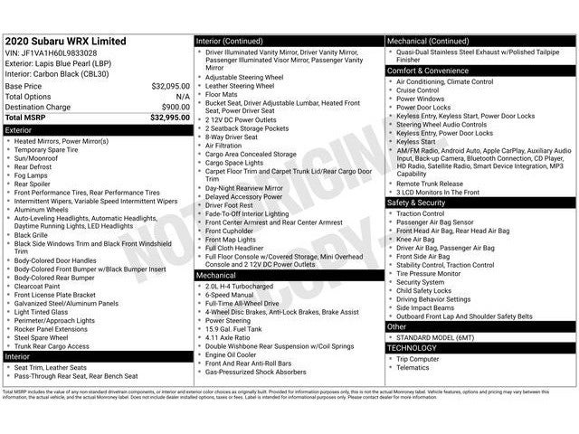 - Radio: Subaru STARLINK 7.0" Multimedia Plus System -inc: AM/FM stereo HD Radio w/single-disc CD player, MP3/WMA/CRR/RW file capability, multi touch gesture high resolution display, 7.0" LCD screen, voice activated controls, Bluetooth® audio streaming connectivity, Bluetooth® hands-free phone and text messaging connectivity (applicable w/compatible cell phone), Near Field Communication (NFC), iPod control capability, rear-vision camera display, SiriusXM All Access radio (subscription required), SiriusXM Travel Link (subscription required), smartphone integration: AHA, Android Auto, CarPlay, Pandora and STARLINK cloud applications, 6 speakers, 3.5mm auxiliary input jack, dual USB ports and roof mounted audio, satellite and connected services antenna