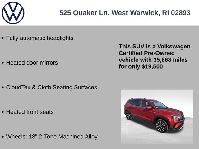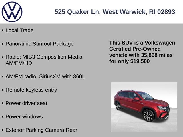 Call Balise Volkswagen TODAY at 401-822-4400 to schedule a test drive or drop by Mon-Fri 9-7, Saturday 9-6.....