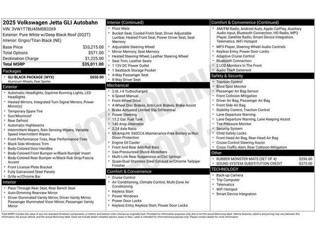 2025 Volkswagen Jetta GLI 2.0T Autobahn