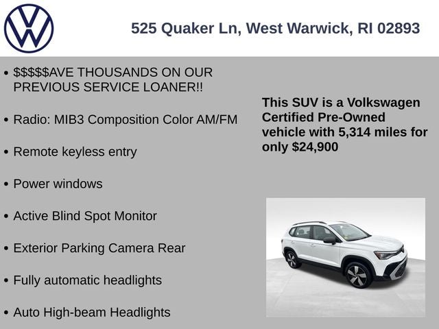 Call Balise Volkswagen TODAY at 401-822-4400 to schedule a test drive or drop by Mon-Fri 9-7, Saturday 9-6......
